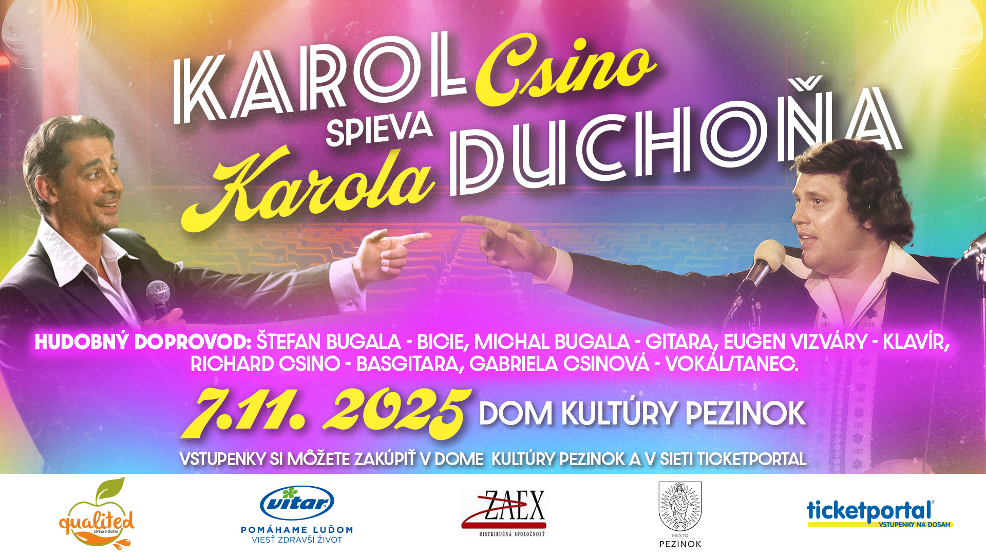 Vstupenky v predaji: https://www.ticketportal.sk/event/Karol-Csino-spieva-Karola-Duchona?idpartner=225